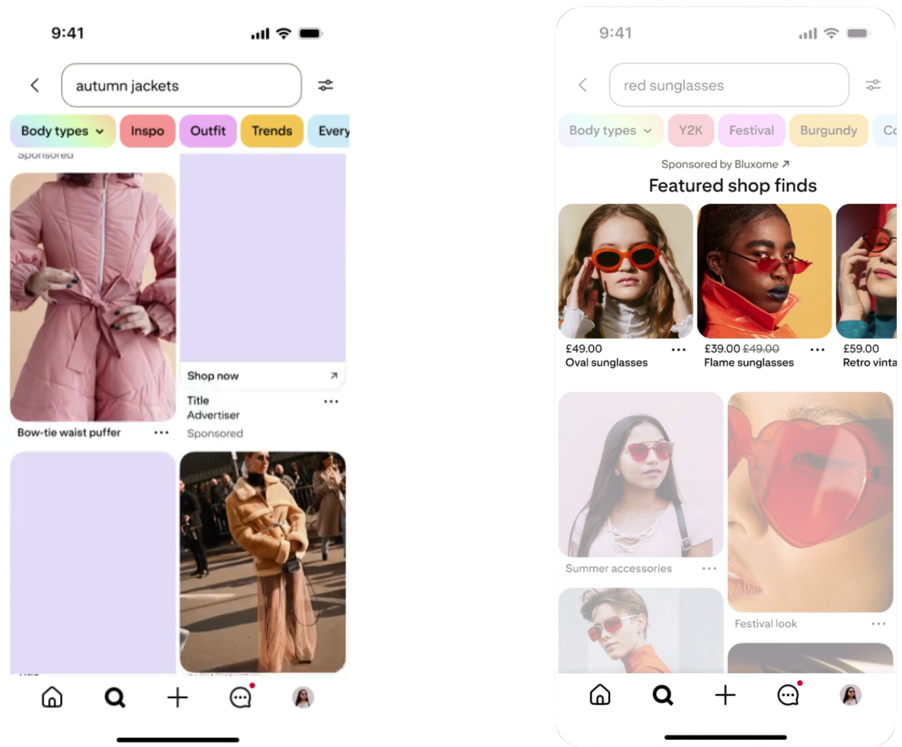 - Pinterest is making search advertising more visual with its Top of Search ads. These ads appear right within the top ten search results and in Related Pins—the spots where nearly half of all clicks happen and users are most open to discovering new products.
